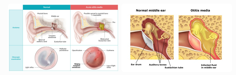 - Persistent or recurrent ear discharge (otorrhea) — may be thick, yellow, green, bloody, or foul-smelling
