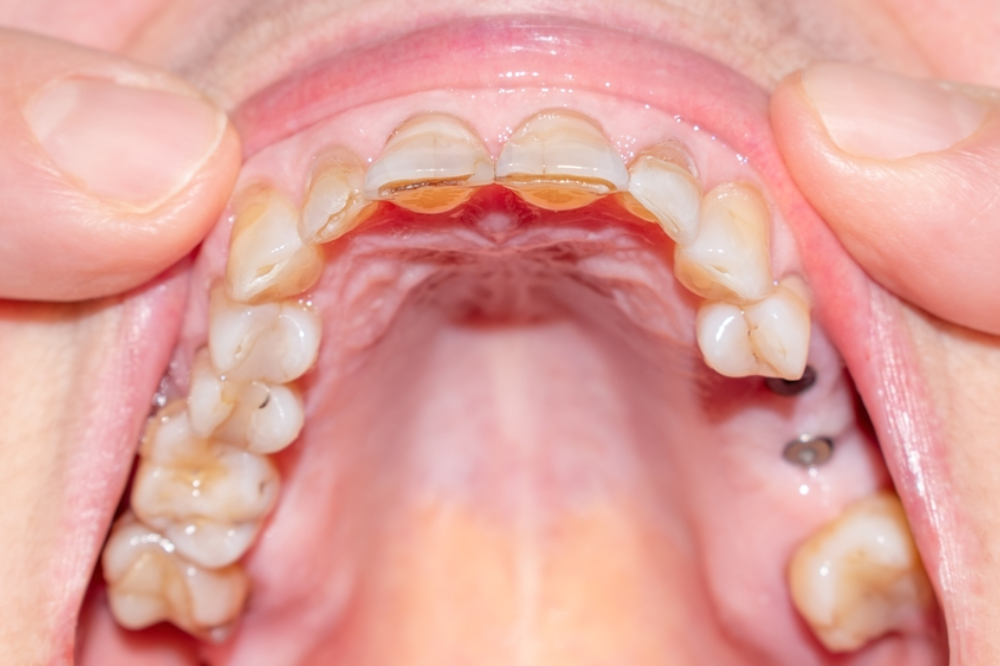 - Enamel erosion from acidic foods/drinks, aggressive brushing, or acid reflux