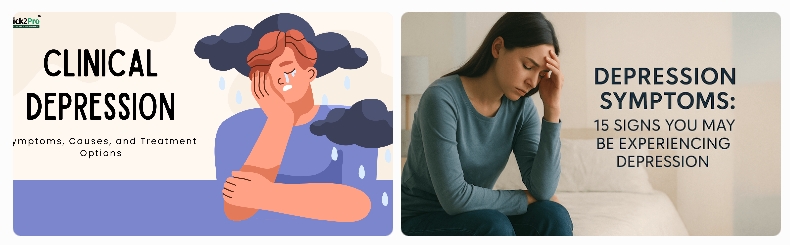 (Images above show common experiences of depression — deep sadness, feeling overwhelmed, loss of interest, and emotional heaviness.)