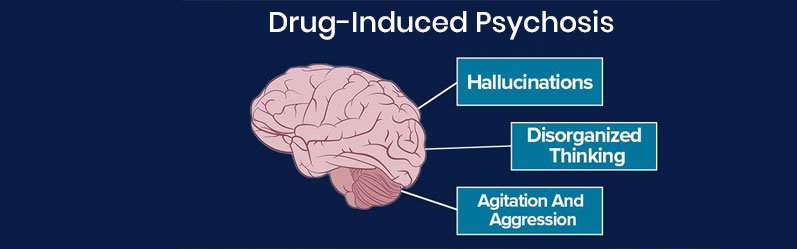 (Images above illustrate drug-induced psychosis — altered mental state with confusion, hallucinations, paranoia, and loss of contact with reality.)